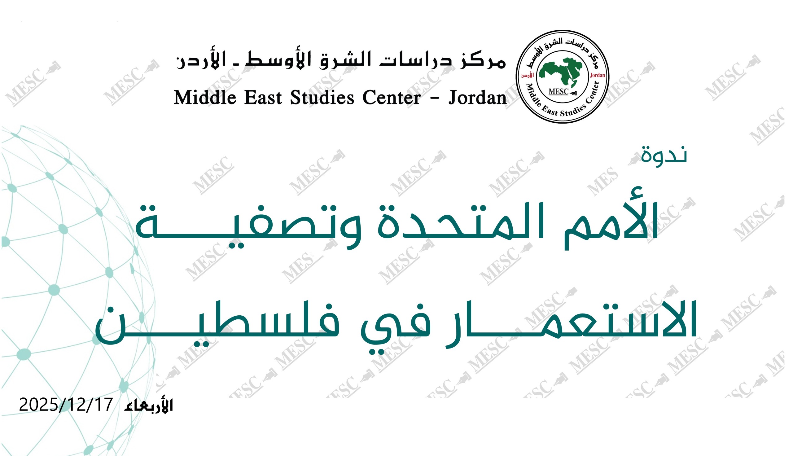 2. بحث المسارات القانونية والسياسية لإمكانية طرح مشروع قرار عربي- إسلامي دولي يؤكد تطبيق مبدأ تصفية الاستعمار على فلسطين، خاصةً في ضوء الرأي الاستشاري الأخير لمحكمة العدل الدولية (2024) بشأن الآثار القانونية للاحتلال الإسرائيلي المستمر.